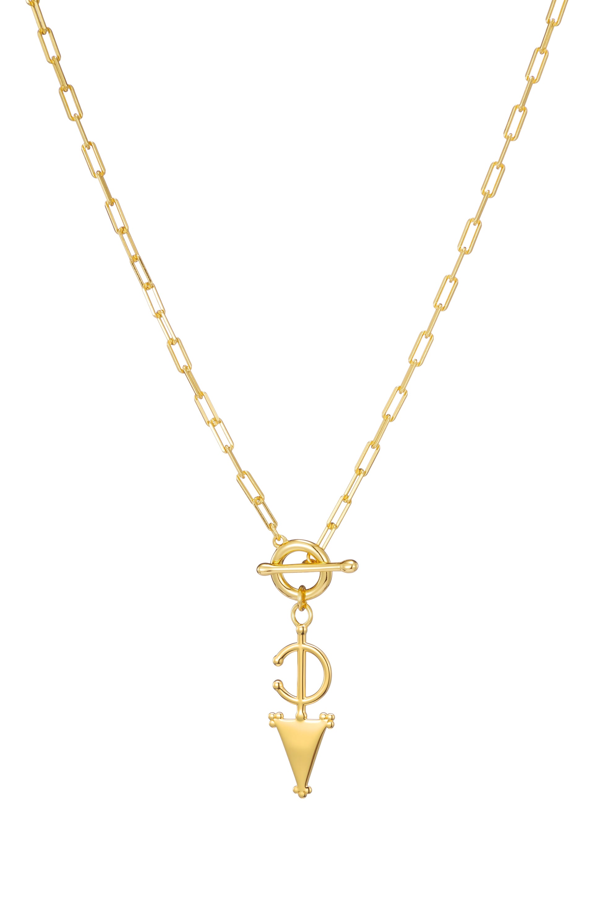 The classic Fibula on the trending T-Bar style necklace, makes a statement with any outfit. Handcrafted in 18k gold vermeil, this piece is a classic.